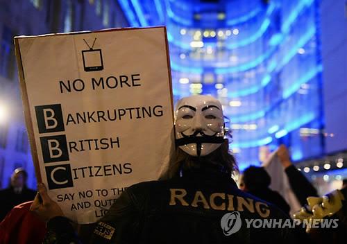 | △ 영국 런던에서 시위를 벌이고 있는 어나니머스 지지자들.(EPA=연합뉴스 DB) |
