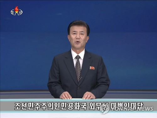 | △ 북한 "핵 포기 없다"…"이란 핵협상 우리와 다르다" (서울=연합뉴스) 북한 외무성 대변인은 21일 이란 핵 협상 타결을 북핵과 연결시키려는 미국에 대해 불쾌감을 나타내며 핵무기를 포기하지 않겠다는 입장을 재확인했다고 조선중앙TV가 보도했다. 2015.7.21 nkphoto@yna.co.kr |
