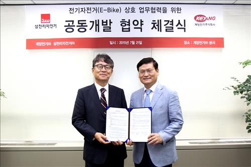 자전거 전문업체 삼천리자전거는 모터 제조·판매회사인 계양전기와 전기 자전거 공동 개발 협약을 맺었다고 21일 밝혔다.