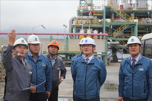 | △ 이승훈 한국가스공사 사장(오른쪽 두번째)이 20일 통영생산기지를 방문해 현장 안전점검을 하고 있다. |