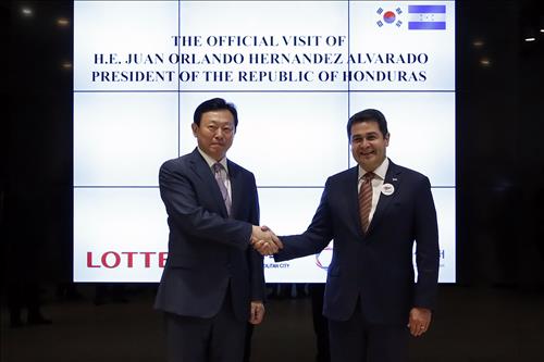또 센터에서 신 회장은 공식 방한 중인 후안 오를란도 에르난데스(Juan Orlando Hernandez) 온두라스 대통령을 만나 부산 지역창조경제 추진 현황을 설명했다.