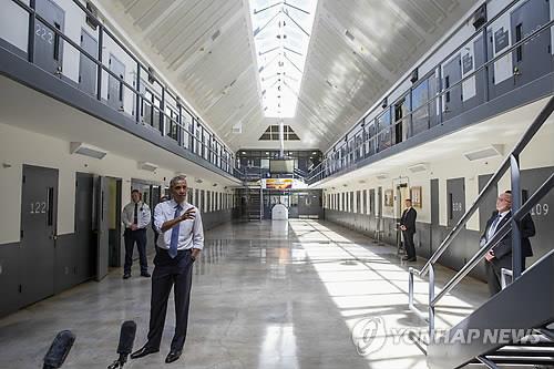 | △ 지난 16일(현지시간) 미국 대통령으로는 처음으로 감옥을 방문한 버락 오바마 대통령 모습(자료사진) |