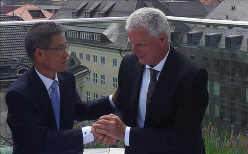 박만영 콜핑 회장과 미하엘 캄 심파텍스 최고경영자(CEO)는 최근 독일 남부 바이에른주 뮌헨의 한 호텔에서 MOU에 서명하고, 올해부터 서로 이익이 되는 방향으로 양사가 장기간 비즈니스 파트너 관계를 가져나가기로 합의했다.