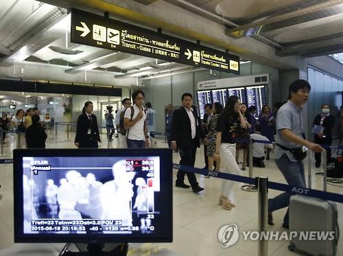 | △ 지난달 태국에서 첫 메르스 환자가 발생했을 때 방콕 수완나품 공항 당국이 열감지기로 승객들의 체온을 측정하고 있다.(AP=연합뉴스 자료사진) |
