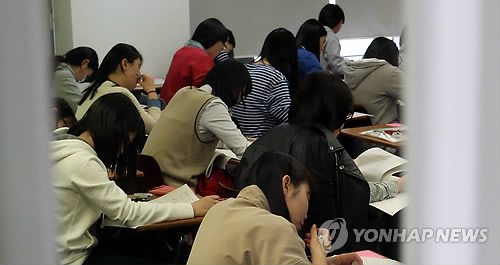 | △ 모의 논술고사 치르는 학생들(연합뉴스 자료사진) |