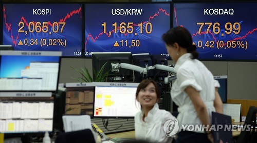 이날 코스피지수는 0.34포인트(0.02%) 오른 2,065.07로 장을 마쳤다.