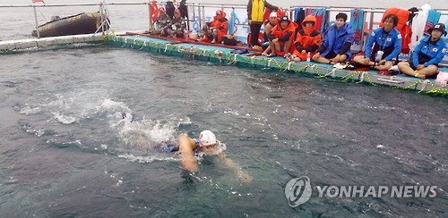 8살 어린이부터 66살 최고령자까지 88명의 선수는 2인 1조가 릴레이로 수영하는 방식으로 독도를 향했다.