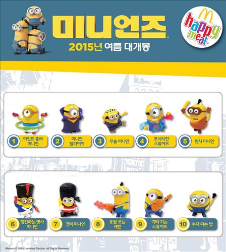 다음 달 9일 오후 3시부터는 또 다른 5가지 미니언 장난감으로 구성된 2차 '미니언 해피밀 스페셜 세트'가 한정 수량으로 선보인다. 다음 달 10일부터는 2차 일반 미니언 해피밀 세트가 판매된다.