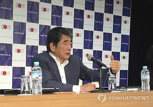 | △ 지난 22일(현지시간) 일본 도쿄에서 대기업 미쓰비시(三菱) 머티리얼의 오카모토 유키오 사외이사가 외신 기자들과 회견하고 있다. 태평양 전쟁 당시 미군 강제징용자들에게 공식 사과한 바 있는 미쓰비시 머티리얼의 오카모토 이사는 영국과 네덜란드, 호주의 전쟁포로에게도 앞서 미군 피해자들에게 한 것처럼 똑같이 회사가 사과하기를 희망한다고 말했다. 그는 또 중국인 강제노역 징용자들과도 원만한 해법을 찾고 싶다고 언급했다. 그러나 한국인 징용 피해자들에 대해서는 법적인 상황이 다르다고 말한 바 있다. (AP=연합뉴스 자료사진) |