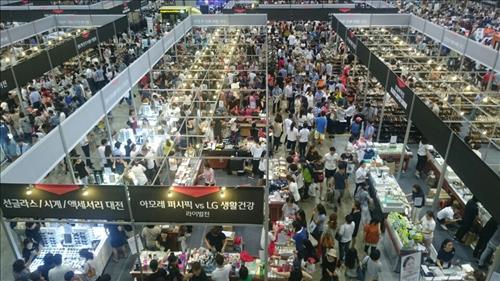 옷걸이에는 고가의 옷들이 빼곡하게 걸려있었으며 행사장을 찾은 고객들은 매대와 매대 사이의 좁은 길로 지나다니며 자신이 원하던 제품이 있는지를 살펴봤다.