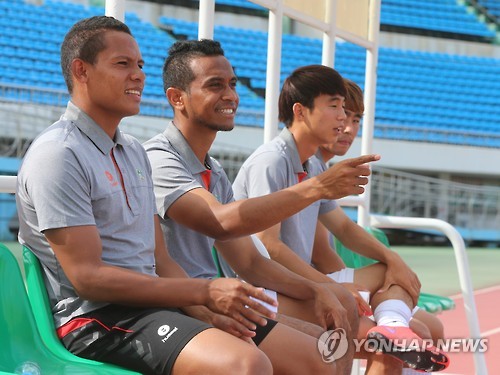 25일 오후 전북 전주종합경기장 축구장 벤치에 앉아 출전을 기다리던 까만 얼굴색의 동티모르 선수 마리아누스(22)는 두 손을 꼭 모으며 되뇌었다.