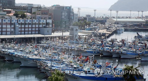 | △ (서귀포=연합뉴스) 고성식 기자 = 어선 등 선박들이 25일 제12호 태풍 할롤라의 북상으로 파도가 높게 이는 제주 남쪽 바다를 피해 서귀포항으로 대피해 있다. 2015.7.25. koss@yna.co.kr |