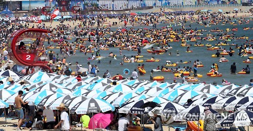 해운대와 광안리, 송정, 송도 등 부산 주요 해수욕장에는 이날 오후 3시까지 40만명 안팎의 피서객이 찾았다.