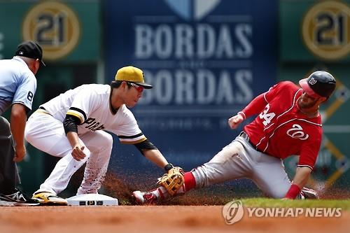 강정호는 26일(현지시간) 미국 펜실베이니아 주 피츠버그의 PNC 파크에서 벌어진 미국프로야구 워싱턴 내셔널스와의 홈경기에서 5번 타자 유격수로 출전해 세 차례 타석에 들어섰으나 안타를 뽑아내지 못했다.