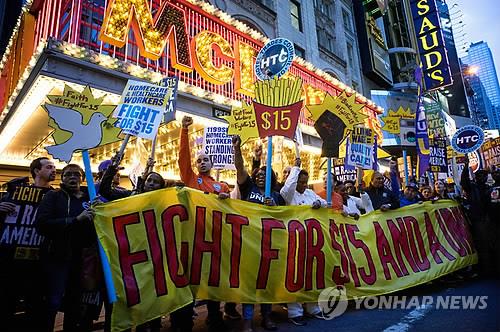 시위의 영향 등으로 작년 6월 미국 워싱턴주 시애틀을 시작으로 캘리포니아주의 샌프란시스코와 로스앤젤레스에 이어 뉴욕주의 시간당 최저임금이 세계에서 가장 높은 15달러(약 1만7천600원)로 인상된다.