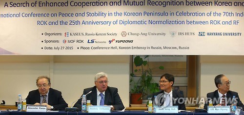 한국슬라브·유라시아학회와 러한소사이어티, 중앙대, 한국외대, 한양대는 27일(현지시간) 오전 모스크바 주재 한국대사관에서 '한·러 수교 25주년 및 광복 70주년 기념 국제학술대회'를 개최했다.
