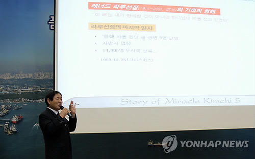이 원장은 한국전쟁과 흥남철수작전, 다른 '김치'들을 찾는 노력, 거제에 흥남철수 기념공원을 만들고 싶은 희망 등을 충실한 자료와 담담한 어조로 전달했다.