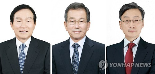 | △ 제12회 기업인 명예의 전당 헌정자 (서울=연합뉴스) IBK기업은행이 28일 '제12회 기업인 명예의 전당' 헌정자로 선정한 동양피스톤 홍순겸 회장(왼쪽부터), 휴롬 김영기 회장, 이오테크닉스 성규동 회장. (IBK기업은행 제공) |