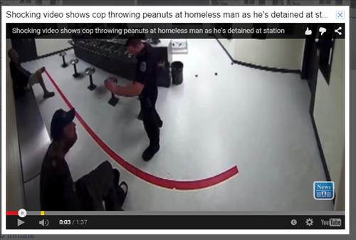 (댈러스=연합뉴스) 장현구 특파원 = 동물원에서 창살에 갇힌 동물에 땅콩을 던져주듯 수감자의 입을 향해 땅콩을 던진 미국 경찰이 국민의 분노를 샀다.