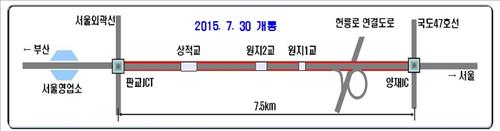 국토교통부는 판교∼양재 확장차로를 12월 개통할 계획이었으나 여름 휴가철 교통량 증가 대비 등을 위해 다섯 달 앞당겨 조기 개통한다고 29일 밝혔다.