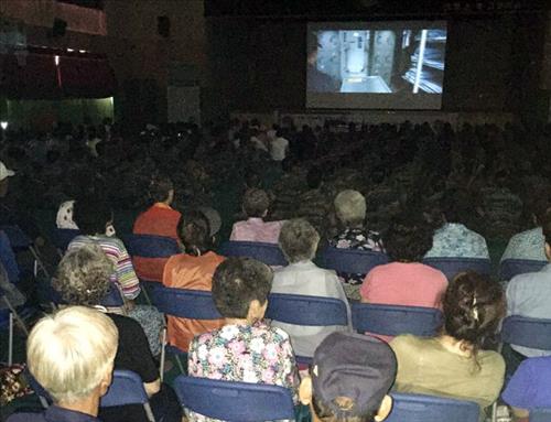 (인천=연합뉴스) 손현규 기자 = 누적 관객 수 600만명 돌파를 앞둔 영화 '연평해전'이 영화관이 없는 연평도 주민과 해병대 장병들을 위해 연평도에서 29일 무료상영됐다.