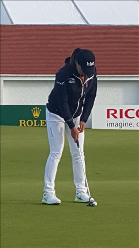 전인지는 코스에 대해 "날씨도 그렇고, 한국하고 너무 다르다. 빨리 적응하는 게 필요할 것 같다"면서 "미국에서 링크스 코스를 경험하기는 했는데 이곳하고는 또 다른 느낌"이라고 했다.