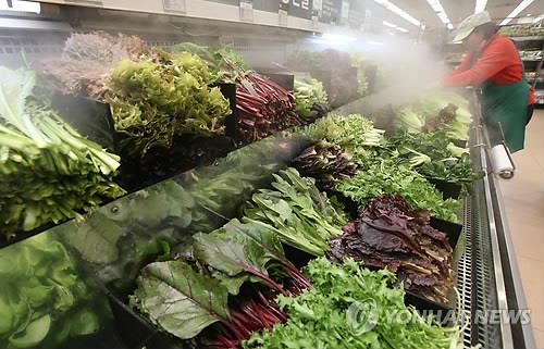 | △ 마트에 진열된 상추 등 채소코너 모습. <연합뉴스 자료사진> |