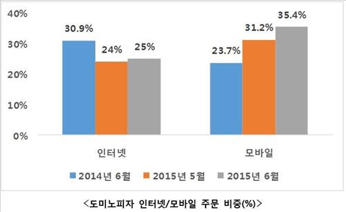 도미노피자에 따르면 지난달 모바일 주문은 35.4%로 지난해 같은 기간(24.7%)보다 12% 증가했으며 이는 같은 기간 인터넷(PC) 주문보다 약 10% 높았다.