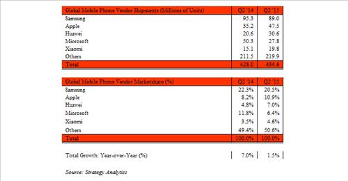 휴대전화 판매량에는 스마트폰과 피처폰이 모두 들어가기 때문에 스마트폰만 파는 2위 애플과 삼성의 차이는 여전히 큰 것으로 나타났다.