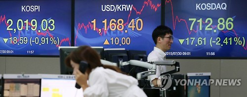 결국 코스피는 18.59포인트(0.91%) 내린 2,019.03으로 장을 마쳤다.
