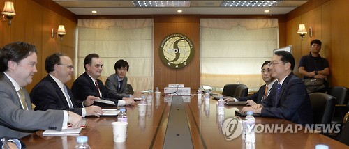 | △ 김건 외교부 북핵외교기획단장이 지난 27일 오후 외교부에서 시드니 사일러 미 국무부 북핵 특사와 면담하고 있다. (연합뉴스 자료사진) |