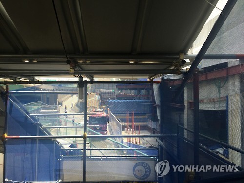 | △ 사고 난 동대구역 환승센터 공사장 (대구=연합뉴스) 김선형 기자 = 31일 오전 콘크리트 타설 작업 중에 바닥이 무너져 근로자들이 다친 대구시 동구 신암동 동대구역 복합환승센터 공사장. 2015.7.31 sds123@yna.co.kr |