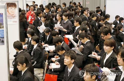 | △ 2015년 3월 1일 일본 도쿄에서 합동 회사설명회에 참석한 학생들의 모습. (교도=연합뉴스 자료사진) |