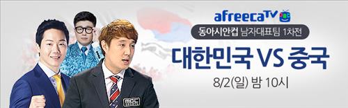 (서울=연합뉴스) 윤보람 기자 = 아프리카TV[067160]는 다음 달 1일 중국 우한에서 개막하는 '2015 EAFF 동아시안컵'의 대한민국 경기와 주요 경기를 모바일과 PC에서 생중계한다고 31일 밝혔다.