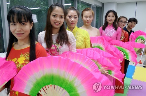한국에 산 지 3∼10년 된 베트남 이주여성인 이들은 일주일에 한 번씩 만나 고국의 부채춤을 연습한다.