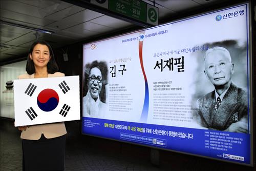(서울=연합뉴스) 고동욱 기자 = 신한은행은 광복 70주년을 맞아 8월 한 달간 서울 지하철 1·2호선 환승역 35곳에서 독립운동가 70인을 소재로 한 광고물을 제작·전시한다고 3일 밝혔다.