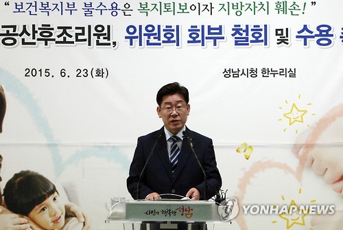 이재명 성남시장은 "성남시는 못하게 하고 정부만 하겠다는 유치한 발상은 아니겠지요"라며 "보건복지부가 산후조리 지원 중용한 줄 알았으니 성남시 산후조리 지원사업도 수용할 걸로 기대한다"고 말했다.