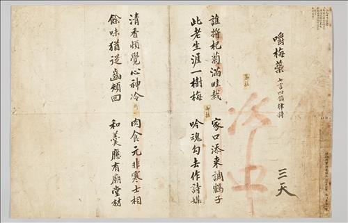 규장각 초계문신(抄啓文臣)이던 이서구는 1785년 10월 24일 '매화 꽃잎을 씹다'라는 뜻의 시 '작매예'(嚼梅蘂)를 지었다.