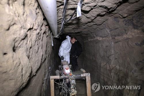 특히 이 땅굴은 국경 넘어 미국으로 마약 등을 밀매하기 위한 목적으로 지난달 연방교도소를 탈옥한 '마약왕' 호아킨 구스만이 이끄는 마약조직 '시날로아'가 팠을 것으로 당국은 추정했다.