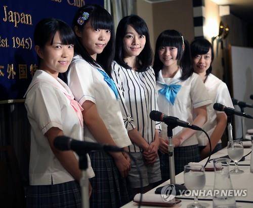 | △ 아베 정권에 비판적인 걸그룹 제복향상위원회 멤버들. 일본의 한 지자체는 이들의 아베정권 비판 공연이 행사 프로그램에 들어갔다는 이유로 민간단체의 행사 후원을 사후적으로 취소했다.(AP.연합뉴스.자료사진) |