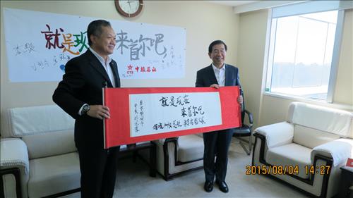 | △ (베이징=연합뉴스) 이준삼 특파원 = 박원순 서울시장과 장스강 CTS 부총재가 박 시장이 붓글씨로 쓴 서울관광 중국어 홍보 문구를 들어보이고 있다. |