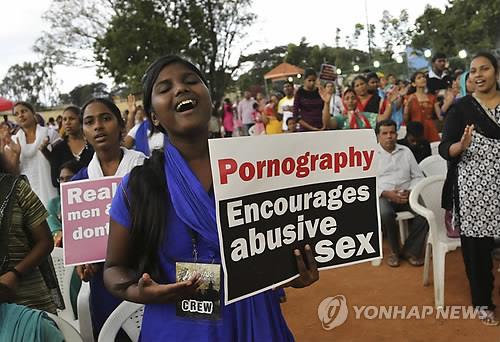 | △ 지난해 8월 인도 벵갈루루에서 열린 음란물 반대 시위(AP=연합뉴스 자료사진) |