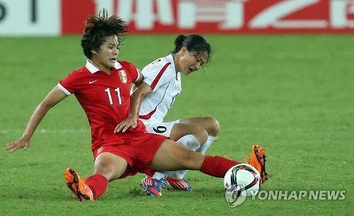 (우한=연합뉴스) 김태종 기자 =북한 여자축구가 2015 동아시아축구연맹(EAFF) 축구선수권대회(이하 동아시안컵)에서 홈팀 중국을 꺾고 2연승을 달렸다.