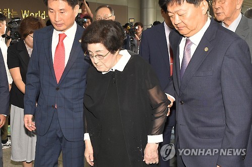 | △ '방북길' 오르는 이희호 여사 (서울=연합뉴스) 윤동진 기자 = 고(故) 김대중 전 대통령의 부인 이희호 여사가 5일 오전 방북길에 오르기 위해 서울 김포공항으로 들어서고 있다. |