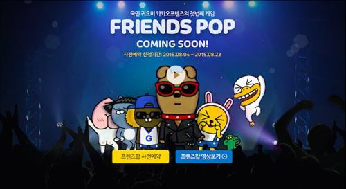 다음카카오[035720]는 NHN픽셀큐브와 공동 개발한 카카오프렌즈의 첫 번째 IP게임인 '프렌즈팝 for kakao'를 이달 중 출시한다고 5일 밝혔다.