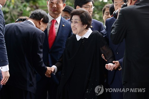| △ 김포공항 들어서는 이희호 여사 (서울=연합뉴스) 윤동진 기자 = 고(故) 김대중 전 대통령의 부인 이희호 여사가 5일 오전 방북길에 오르기 위해 서울 김포공항으로 들어서던중 배웅나온 관계자 악수 하고 있다. |