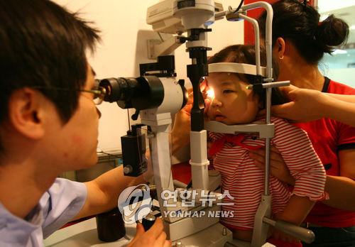 | △ 한 안과에서 유행성 눈병에 걸린 한 어린이가 진료를 받고 있다. (연합뉴스 자료사진) |