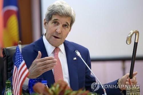 (서울=연합뉴스) 이윤영 기자 = 말레이시아에서 열리는 아세안지역안보포럼(ARF) 외교장관회의에 참석 중인 존 케리 미국 국무장관이 5일(현지시간) 아주 특별한 지팡이를 짚고 나타났다.