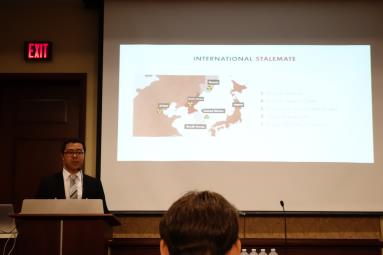 | △ 미국 인권단체 LiNK의 박석길 정책연구국장이 5일(현지시간) 미 의회에서 강연하고 있다. |