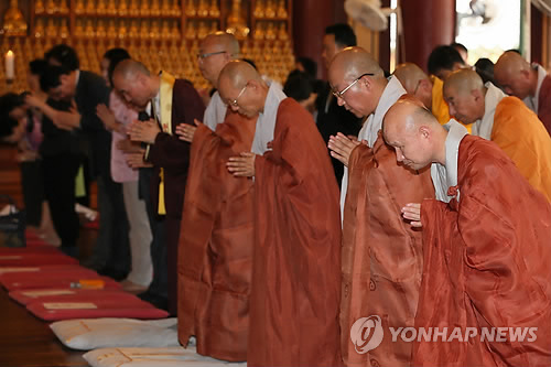 | △ '통일을 기원하며' (서울=연합뉴스) 박지호 기자 = 15일 오후 서울 강남구 삼성동 봉은사에서 광복 68돌을 맞아 통일기원 남북 동시법회가 열리고 있다. 2013.8.15 << 문화부 기사참조 >> jihopark@yna.co.kr |